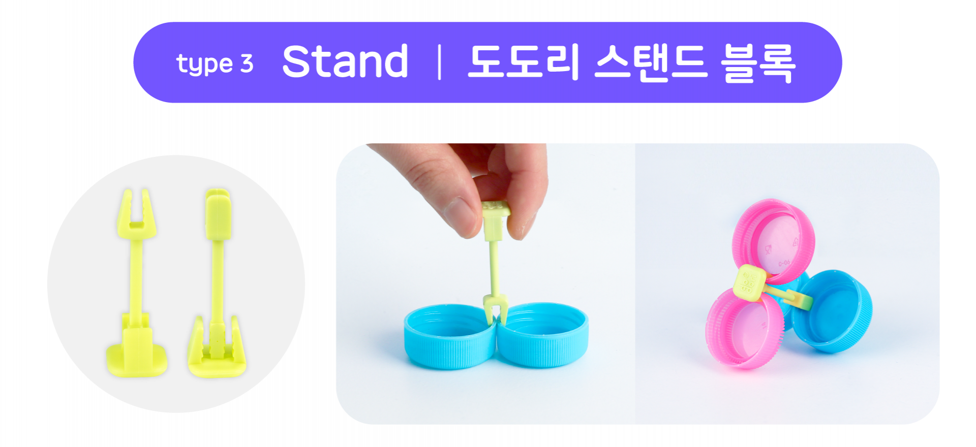 스탠드 블록은 병뚜껑을 위아래로 길고 높게 연결해주는 블록입니다.