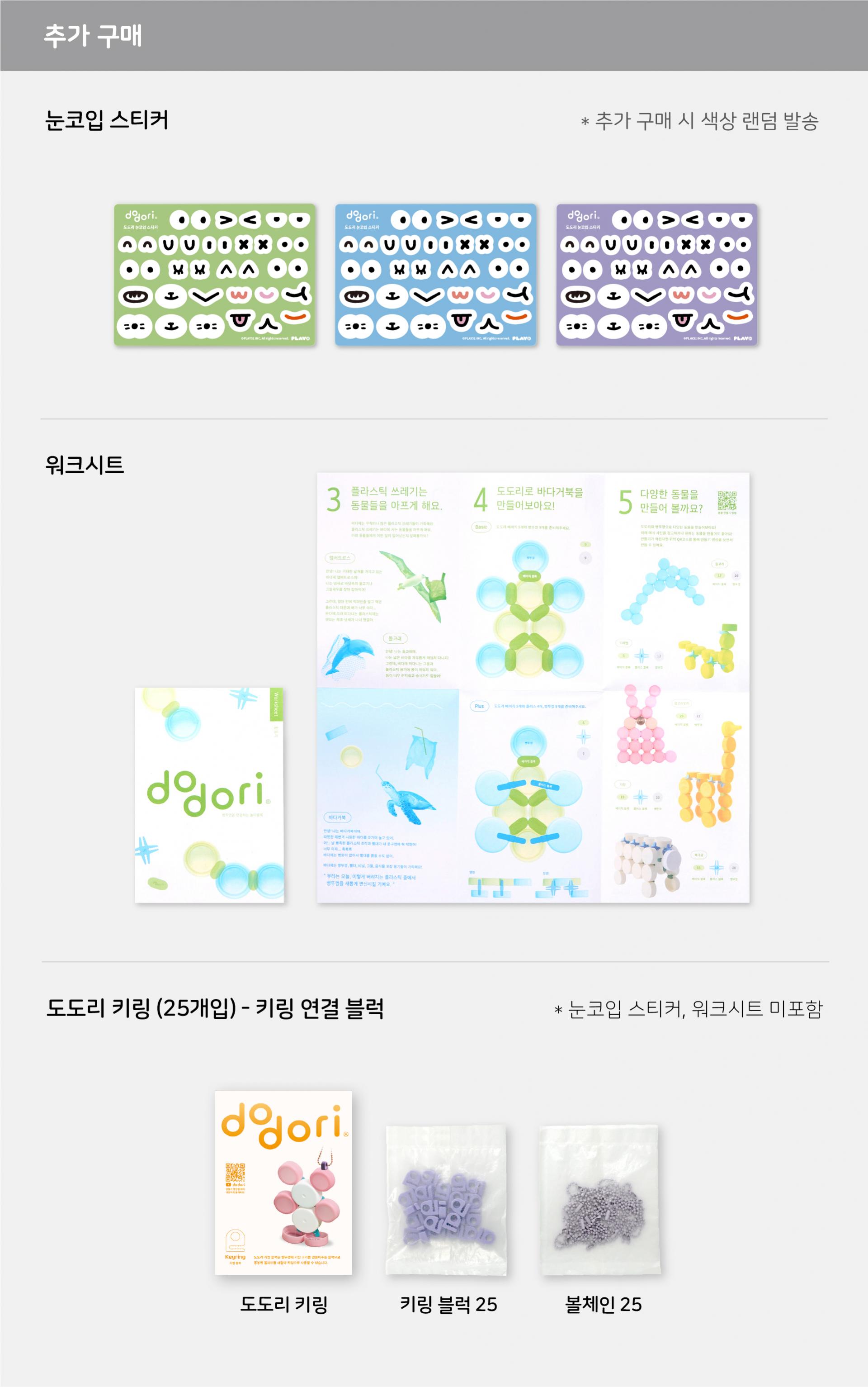 * 도도리 키링 제품 구성에 눈코입 스티커, 워크시트가 포함되어 있지 않습니다. 구매를 원하실 경우 추가 옵션을 선택해 주세요.
