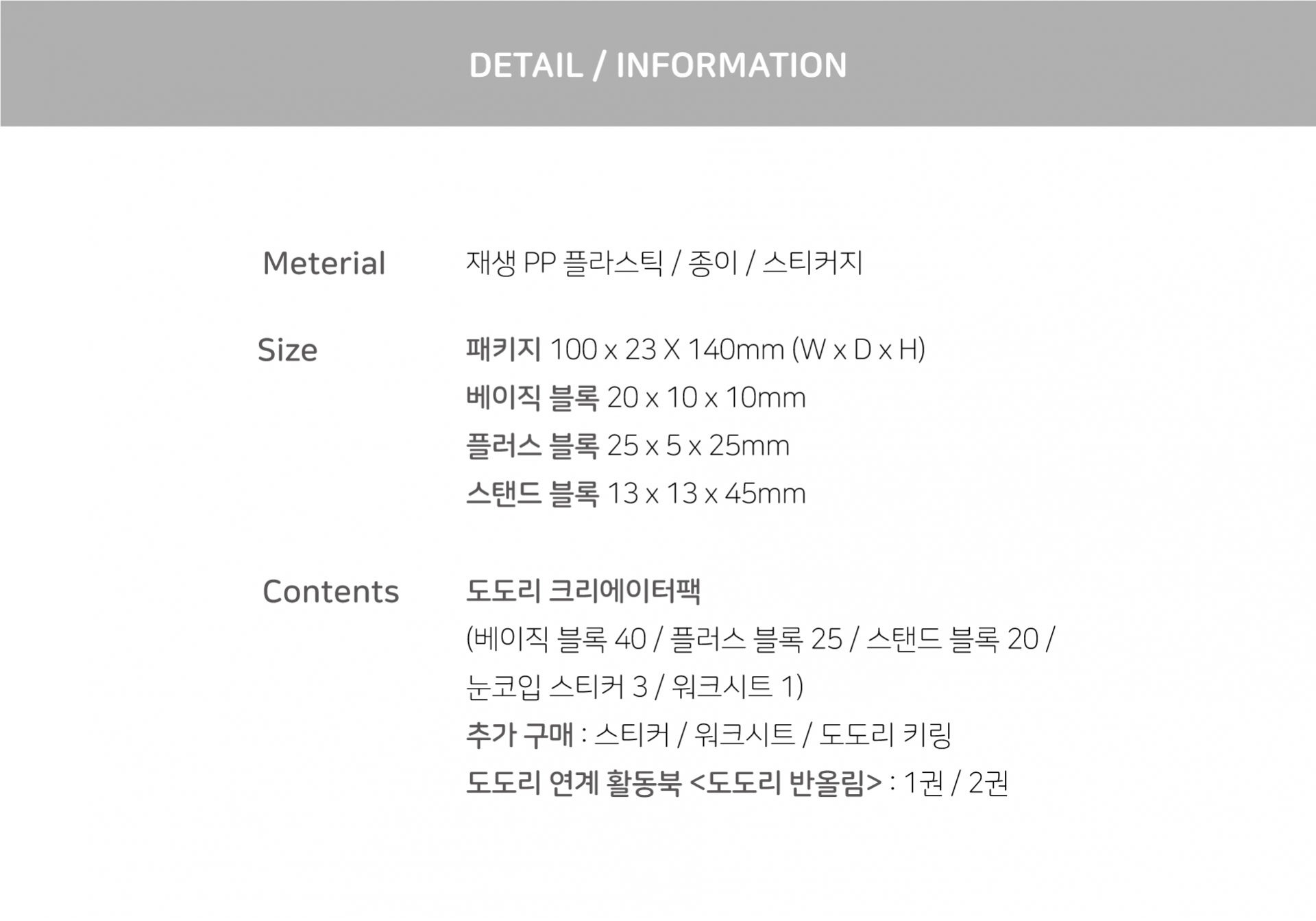 * 키링 블록은 ‘도도리 크리에이터팩’에 포함되어 있지 않습니다.