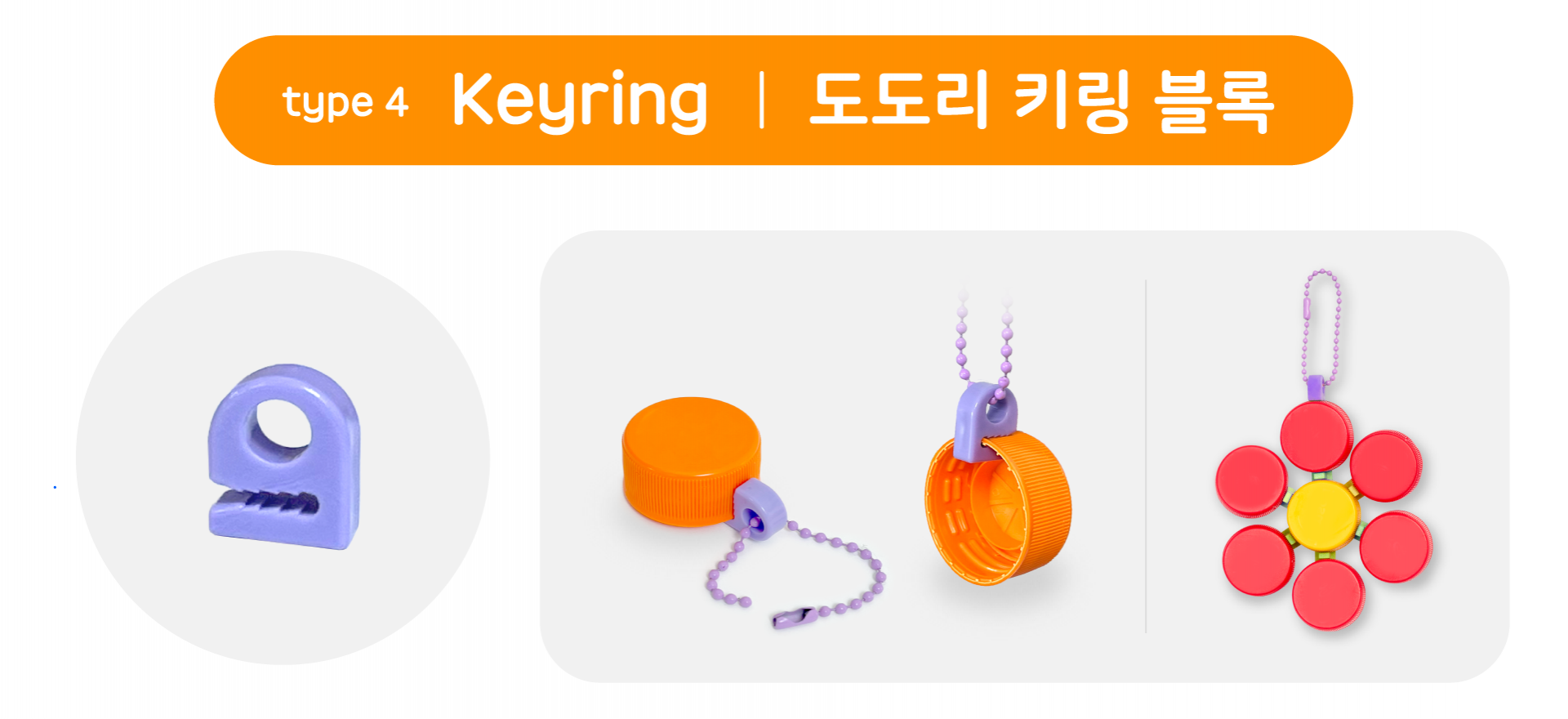 키링 블록은 병뚜껑에 고리를 만들어주는 블록입니다.