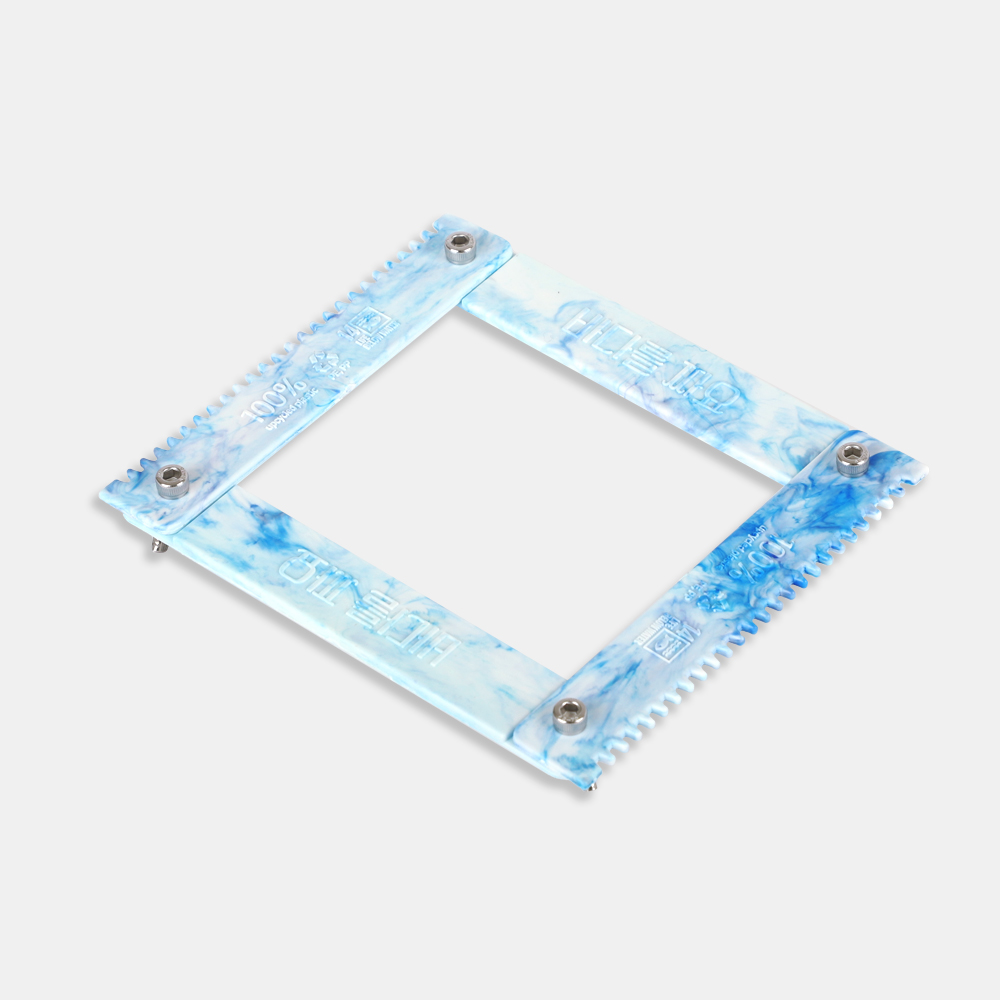1. 지지대의 계단식 홈에 직조틀을 맞춘 뒤 나비볼트로 고정해 줍니다.