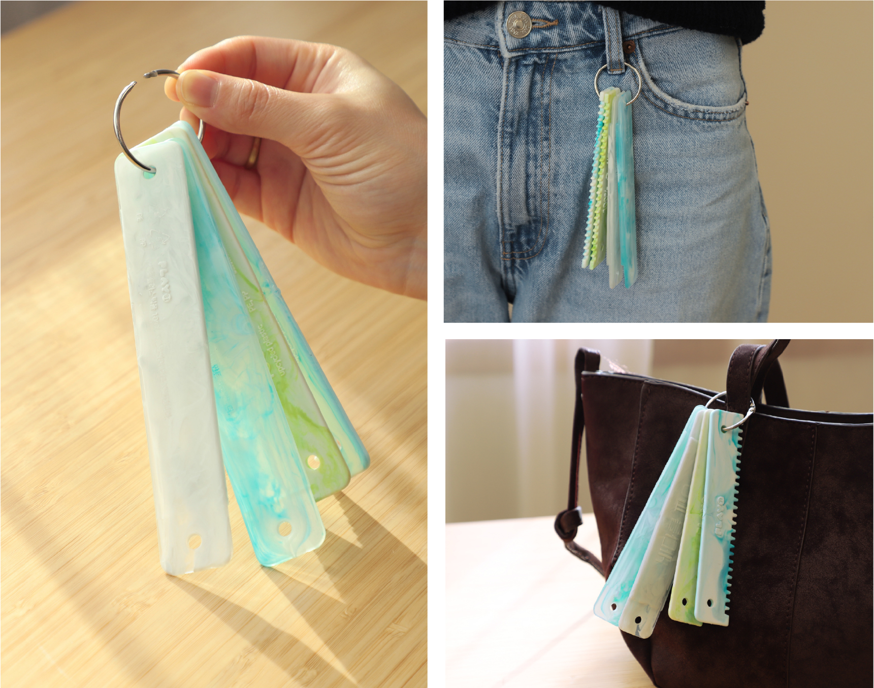 모듈형으로 제작된 바다를짜요는 가방에 달아 간편하게 휴대할 수 있습니다. 걸을 때마다 찰그락거리는 바다를짜요의 존재감을 느껴보세요.
