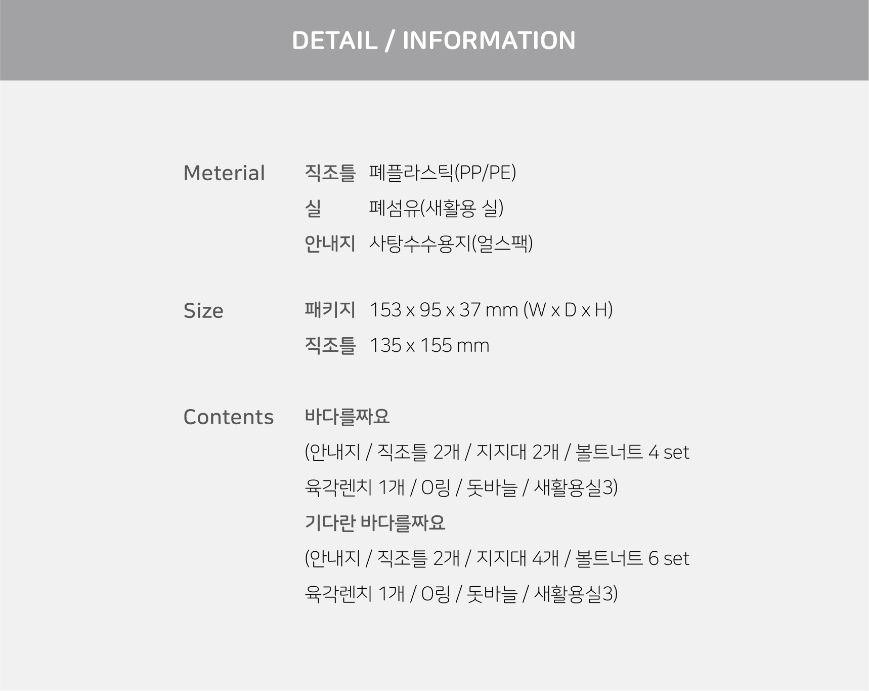 페이지 하단 상품 구성 정보 참고 부탁드립니다.