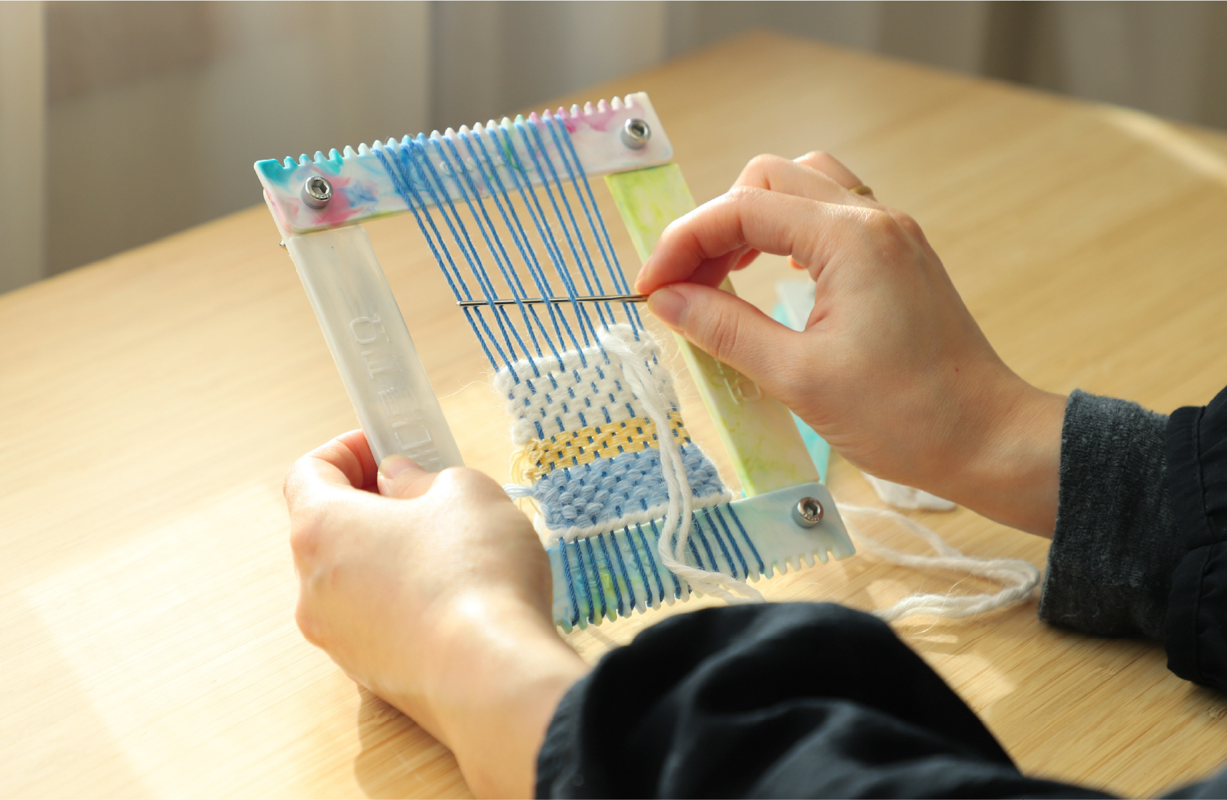 강원도에서 태피스트리 작업을 하는 정보아 작가님과 함께 개발하며, 휴대용 직조도구로서의 실용성을 갖추는 동시에 플레이31의 포용성과 환경적 가치를 담아냈습니다.
