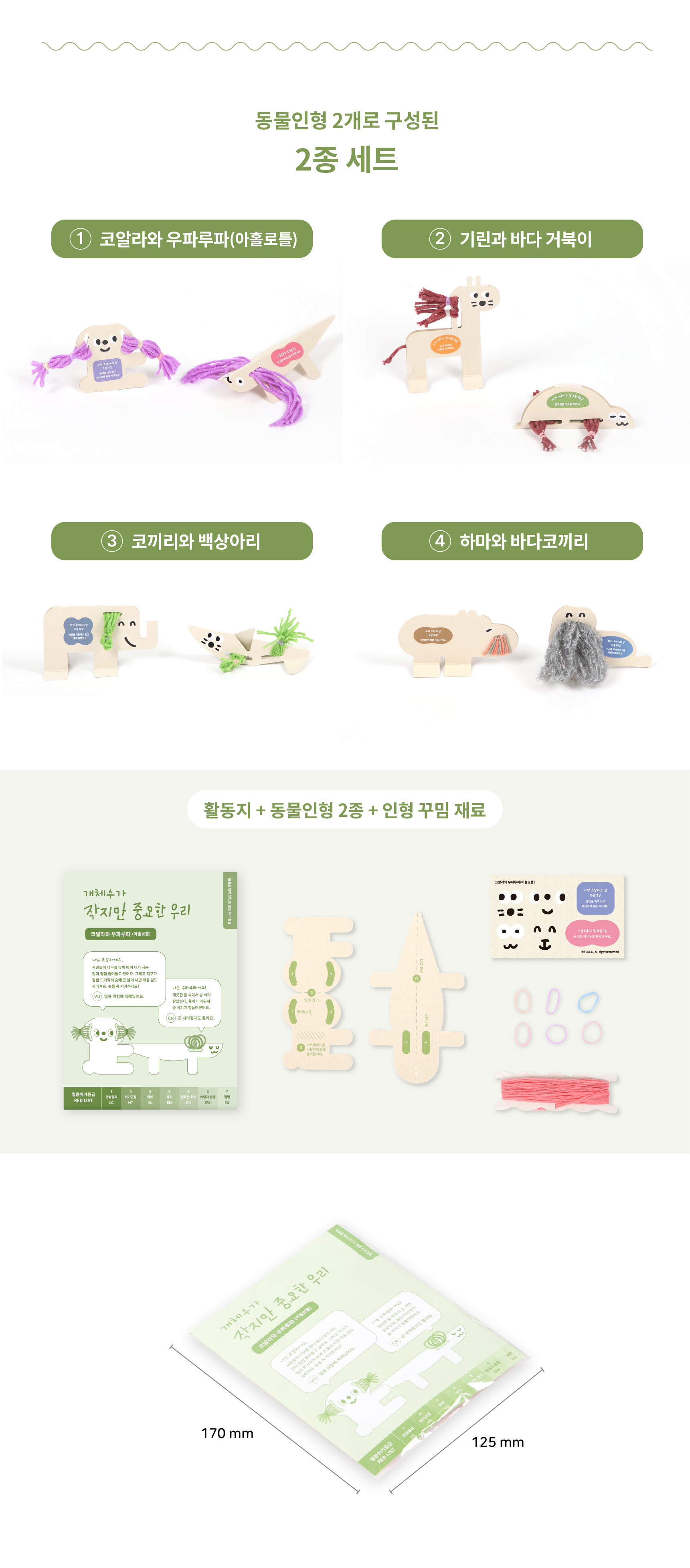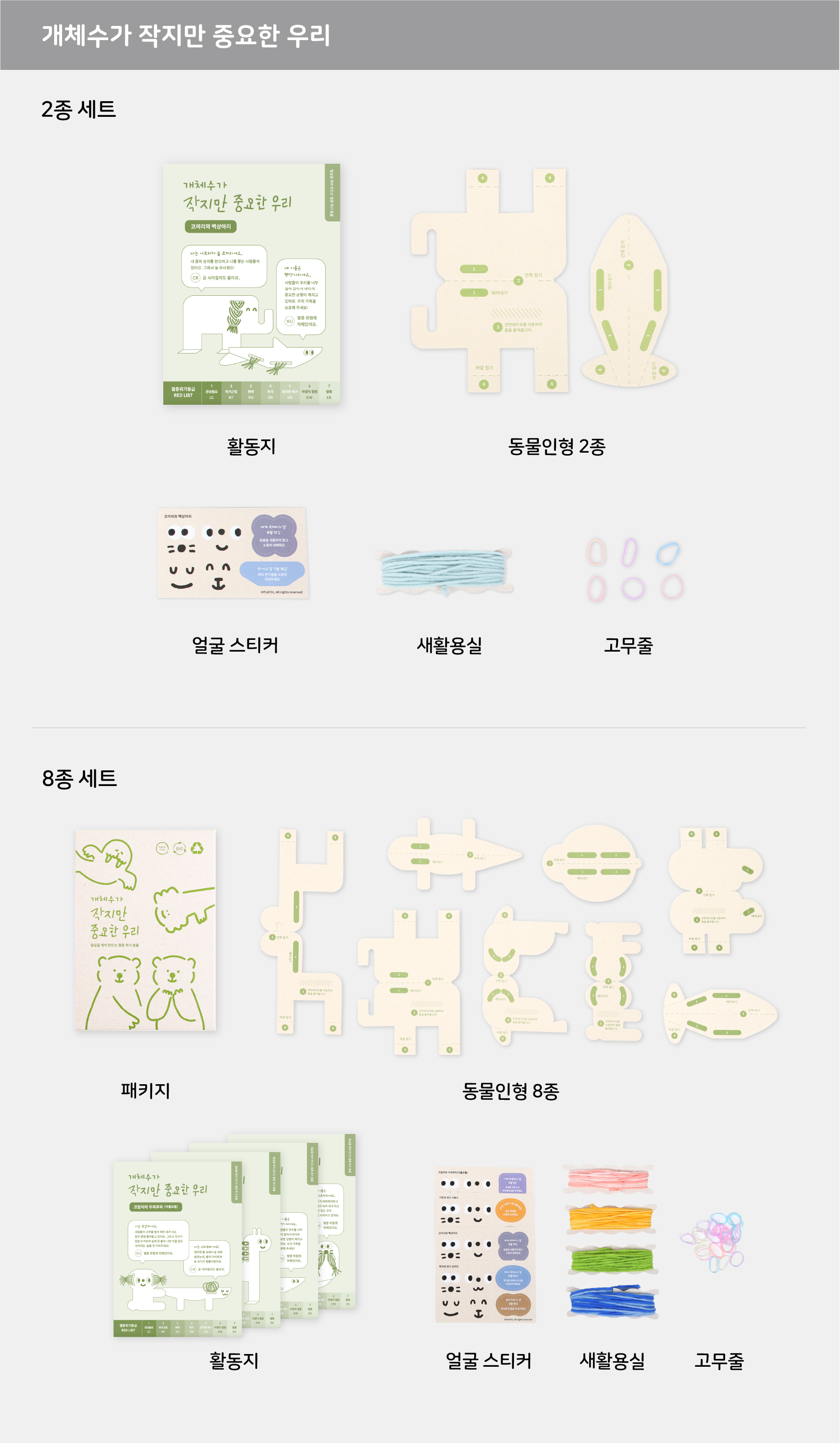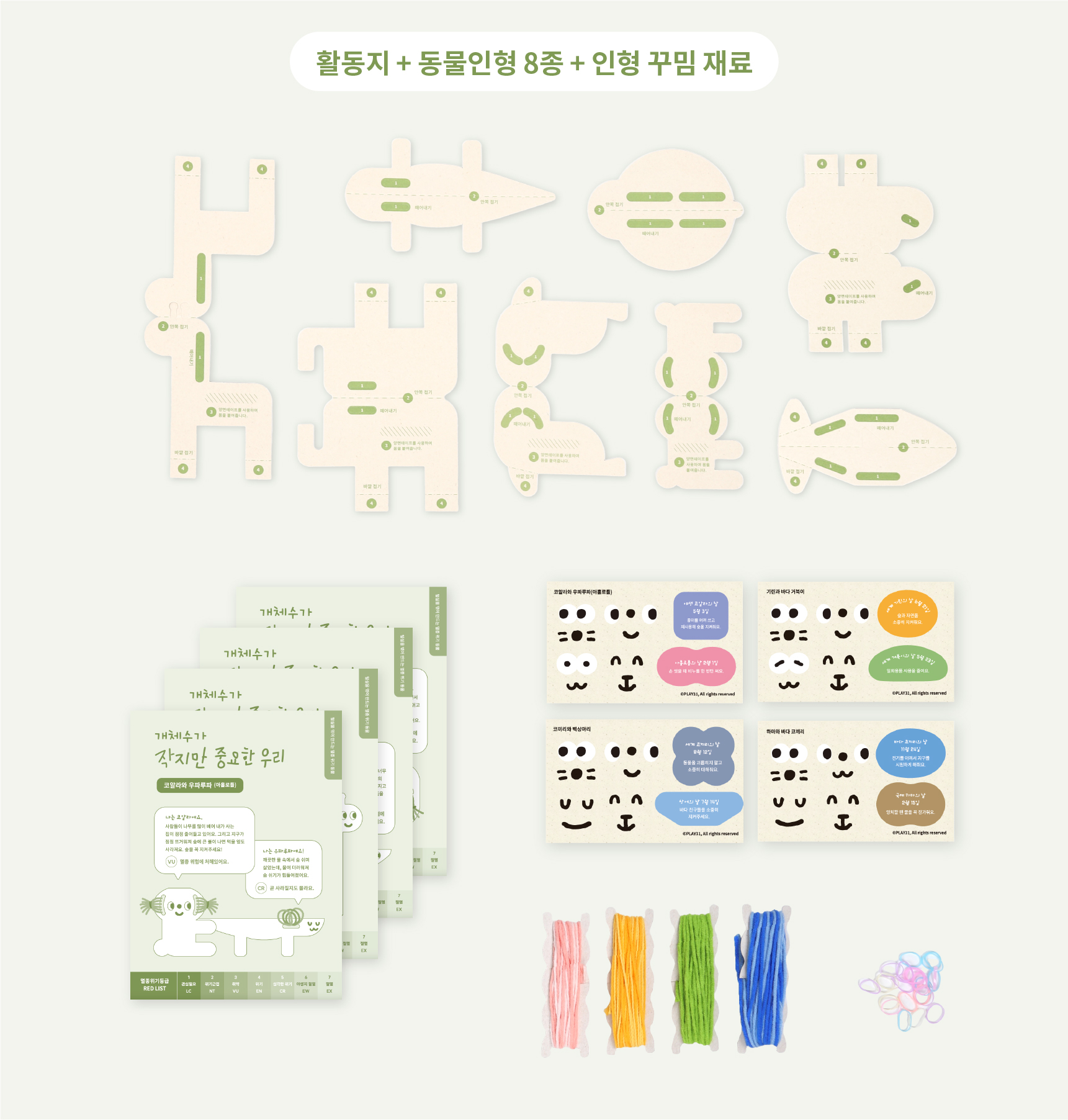 ‘개체수가 작지만 중요한 우리’는 점점 사라지는 ‘멸종 위기 동물인형' 을 만드는 놀이창작키트입니다.