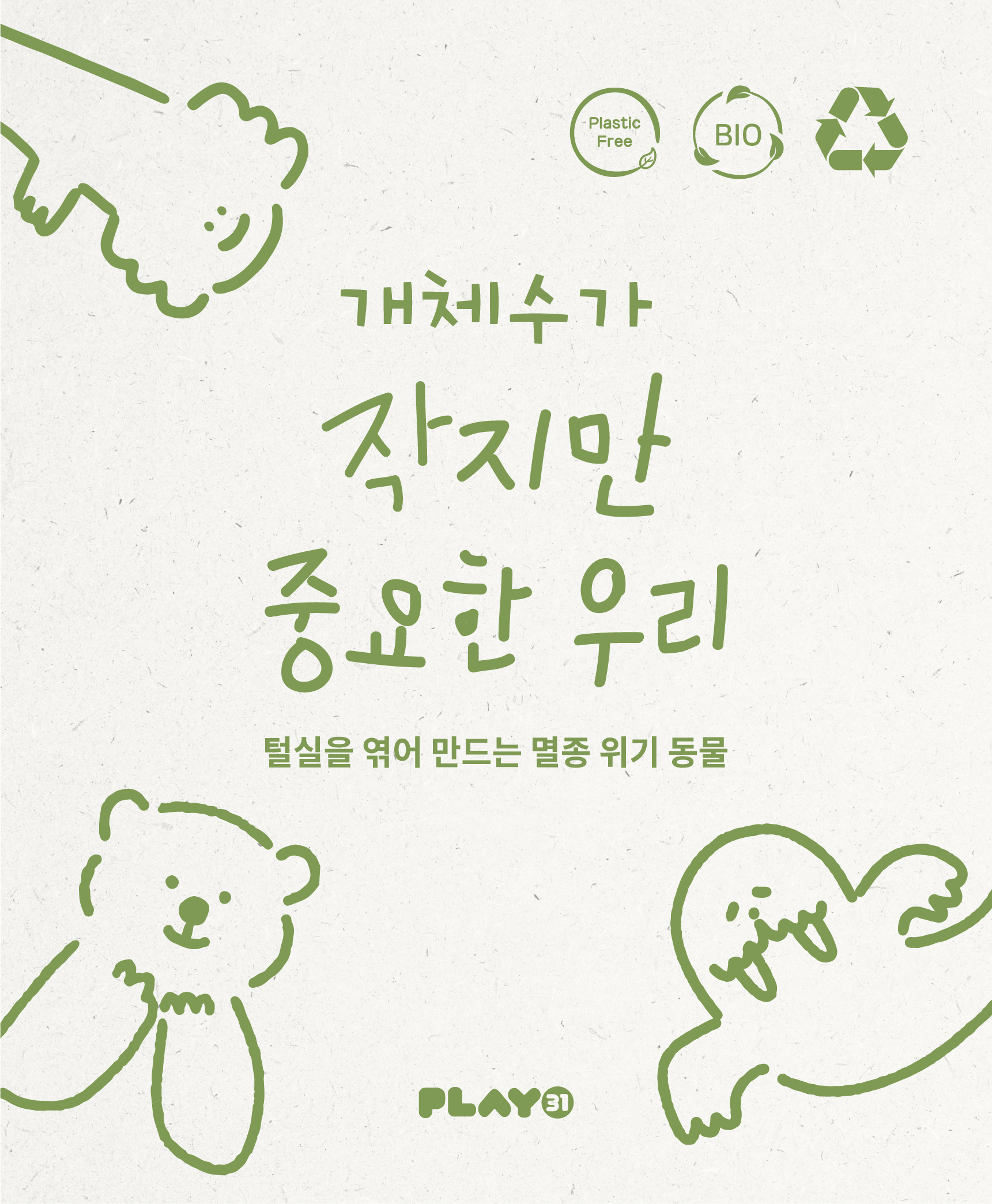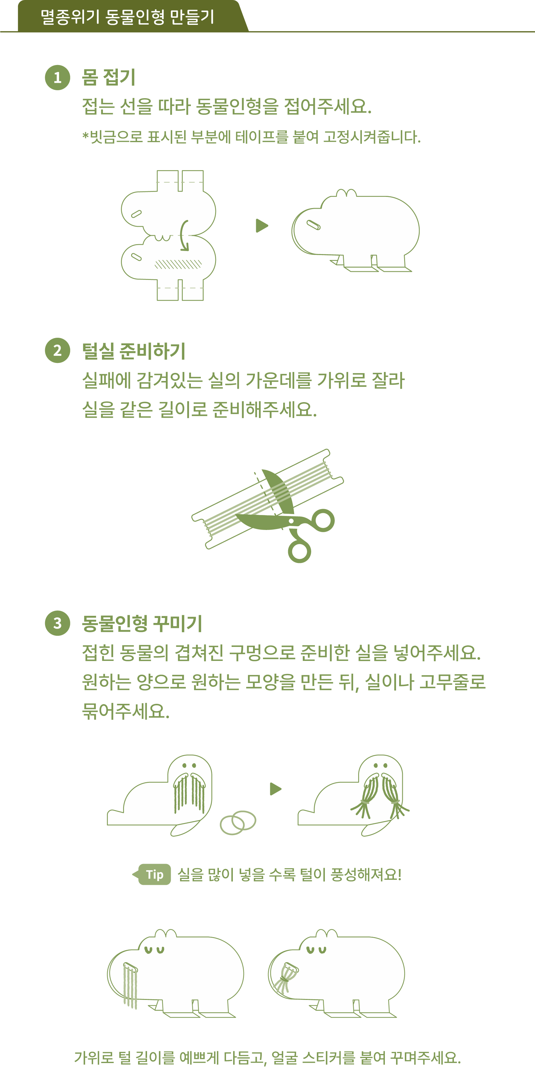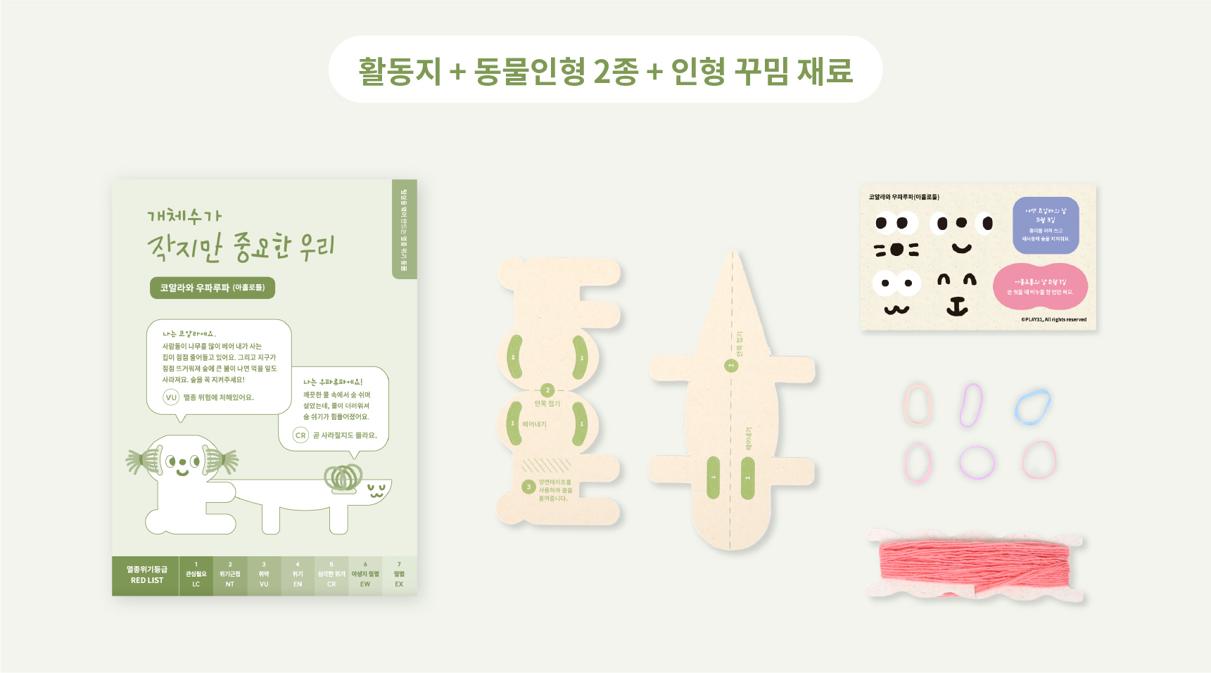 ‘개체수가 작지만 중요한 우리’는 점점 사라지는 ‘멸종 위기 동물인형' 을 만드는 놀이창작키트입니다.