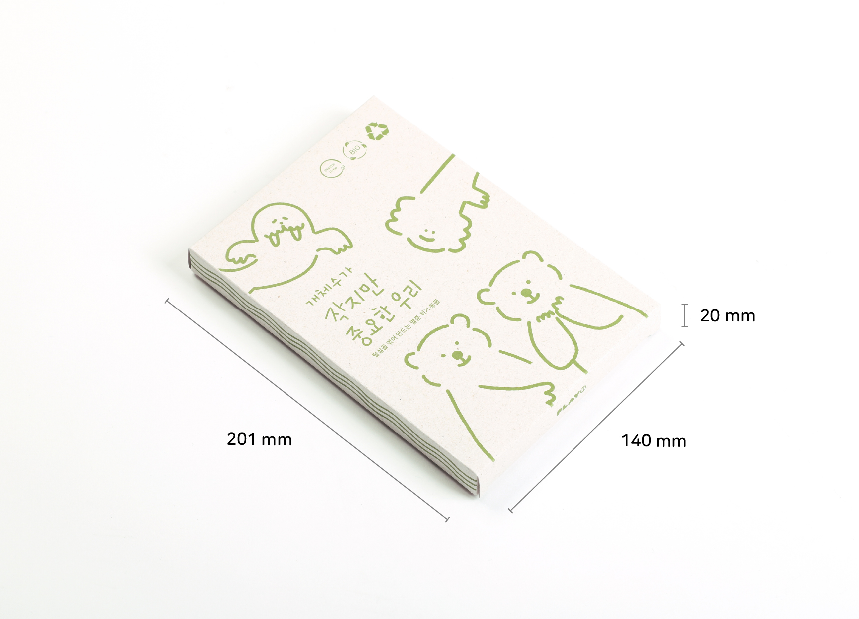 " 본 제품은 생산과정에서 버려지는 자투리 종이, 실 등의 폐자원을 새활용하여 제작되었으며 지구에게 90g 이상의 가벼움을 선물하였습니다. "